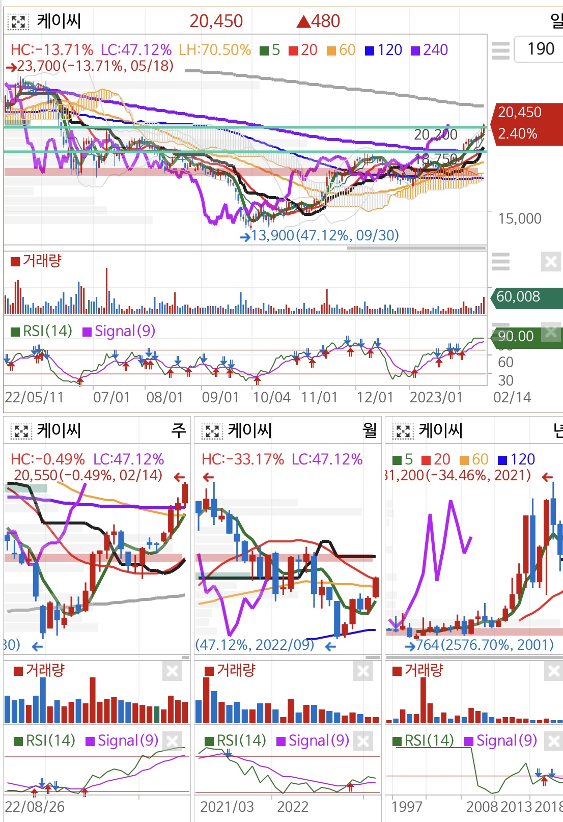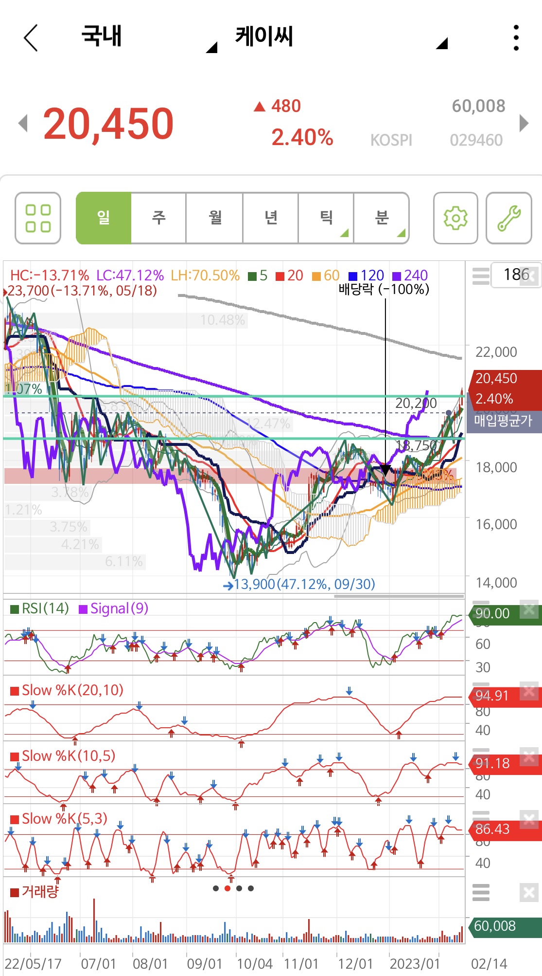- RSI가 너무 높아 매수존 90을 넘어선 부담이 크다