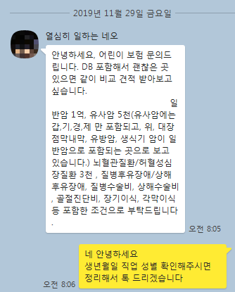 일요일은 원래 쉬는데 오후에 투자 관련 세미나에 참석하기로 되어 있었기 때문에 오전에 일이라도 해서 참가하다고 출근했습니다. 토요일도 조용하지 않지만 일요일은 확실히 더 조용하군요. 약속 시간이 오후 3시 30분이라 포스팅을 하나 준비해서 점심을 먹고 이동하면 시간이 딱 맞습니다 (웃음)이달 9일에 성인 보험에서 부족한 보장을 보완한 45세의 여성 분의 가입 사례입니다. 6월 보험 리모델링 때문에 천안에 다녀온 내용을 싣는데 그 때 진행을 하면서 여자 분은 고지 사항 및 보상 이력 때문에 가입이 어려워서 12월에 진행을 또 하시는 게 좋다고 말씀 드렸습니다.언제 그 때가 되더니 문득 생각하고 보면 이달에 되었습니다. 그래서 이전 보내신 병원 의무 기록지를 확인하고 내원 날 및 치료 내용을 모두 정리하고 공지 사항에서 벗어나날짜가 언제인지 확인하고 고지하지 않아도 과거의 보상 이력이 잡히지 않아 가입 가능한 회사를 미리 찾아 두었어요.가입 시점에서 고지하는 내용이 없어도 과거에 지급된 보험금 수령 이력 때문에 어쩔 수 없이 심사를 받지 않으면 안 되거나, 그래서 정상적으로 가입이 어려운 경우가 종종 발생합니다. 보험 회사마다 시스템이 다르므로 그것을 잡고 회사도 있으면 그냥 넘어갈 회사도 있습니다. 다행히도 찾고 있어 승인되는 회사가 있어서 준비를 하고 모셨습니다.그 여자 분 교웅에는 이전에 보험이 3개 정도 있었습니다. 보건 진단을 했을 때 가입하고 있는 보장 내용이 모두 정상이 괜찮아서 부족하다고 판단되는 암 뇌심 보험과 후유 장애, 수술비 중심으로 설계하고 드리고 그렇게 성인 보험을 보완하기로 결정되고 있었습니다.이미 가입한 3개의 보장 내용을 종합하면*A사 1. 사망 보장:일반 사망 3000만원/재해 사망 3000만원 2. 암 관련 보장 암 진단비 2000만원 80세 만기 상피 내 암/경계선 종양 진단비 200만원, 암 수술비 400만원/암 입원 날당 20만원(4일째부터)3.2대 질병(뇌/심장)-뇌 중풍 진단비 2000만원/급성 심근 경색 진단비 2000만원 4. 후유 장애-재해 장애 진단비 1급 3,2~6급 2~6급 80세/질병 관련 수술비, 병으로 365일 이상 입원의 경우 300만원 80세(B사(80세 만기)1. 암 관련 보장-암 진단비 1000만원/유사 암 진단비 100만원 고액 암 진단비 6000만원*C사 1.실손 의료비-상해/질병 입원 의료비 5000만원/상해/질병 통원 의료비 25만원(외래), 5만원(약사)2. 사망 보장-상해 사망 1000만원, 공공 교통 이용 중 상해 사망 3억원 3. 후유 장애(3~100%)진단 후의 긴 해(3~100%).기타-가족의 일상 생활 배상 책임 1억원 종합을 하다 보니, A사의 보험의 경우 암, 뇌졸중 급성 심근 경색 진단비가 1개 가운데 처음에 생기는 병에 대해서만 1회만 지급하고 나머지는 없기 때문에 암 진단비의 경우 합계 3000만원에도 암 뇌심 보험 중 뇌, 심장 관련 검진비가 지급되자 실제로 암 진단비가 남는 것은 1000만원밖에 안 됩니다.거꾸로 암 진단비가 먼저 지급하면 뇌와 심장 측 진단비는 받을 것이 아무것도 없어지는 상황이라는 것을 보건 진단에서 알았습니다. 그래서 보완하라 방향은 암 뇌심 보험과 상해/질병 후유 장애 진단비, 성인 질환 수술비이며 가입된 성인 보험은 양지하였습니다.피보험자 기준-여성/주부(상해 급수 1급)/20년 군납 90세 만기(일부 특약 10년 및 20년 경신형 포함)
