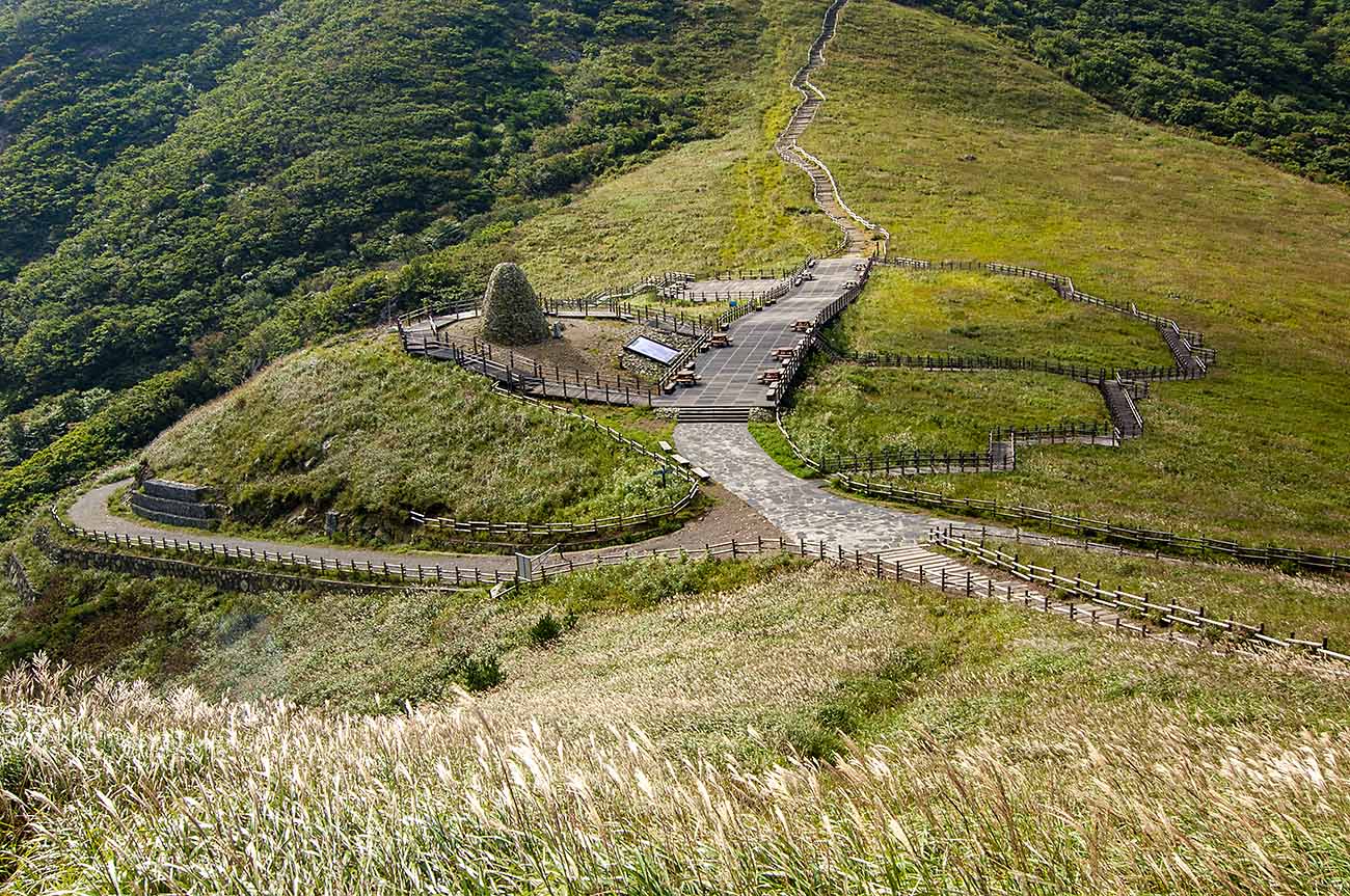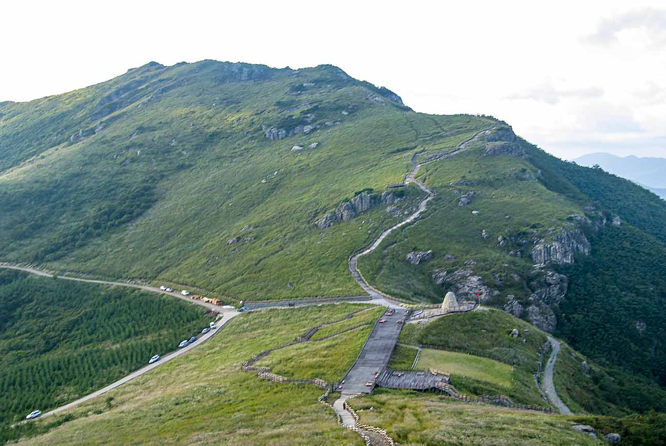 이곳이 이와모산의 공룡능선(오른쪽 아래)이 있는 곳이다. 옌양 덩지 온천에서 시작하는 이와게츠 등산로 구간입니다.