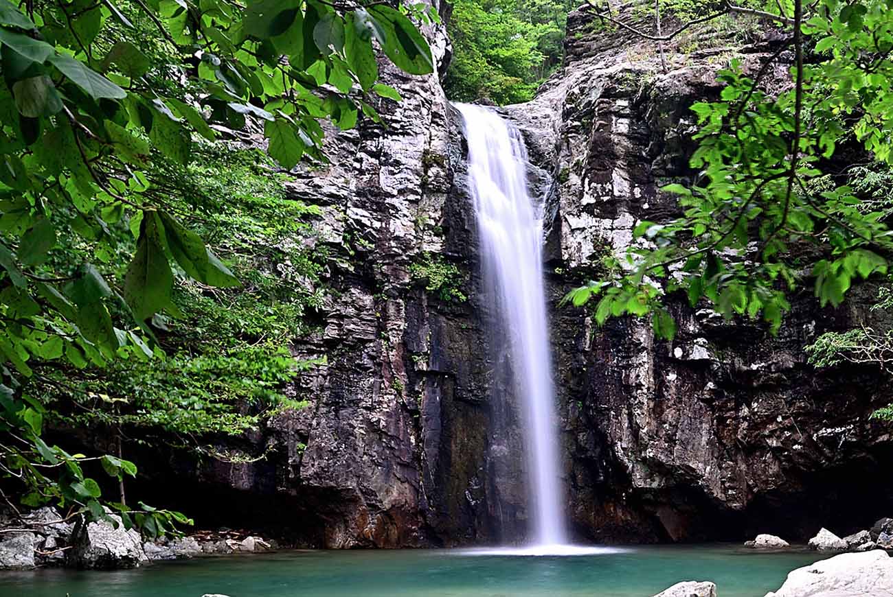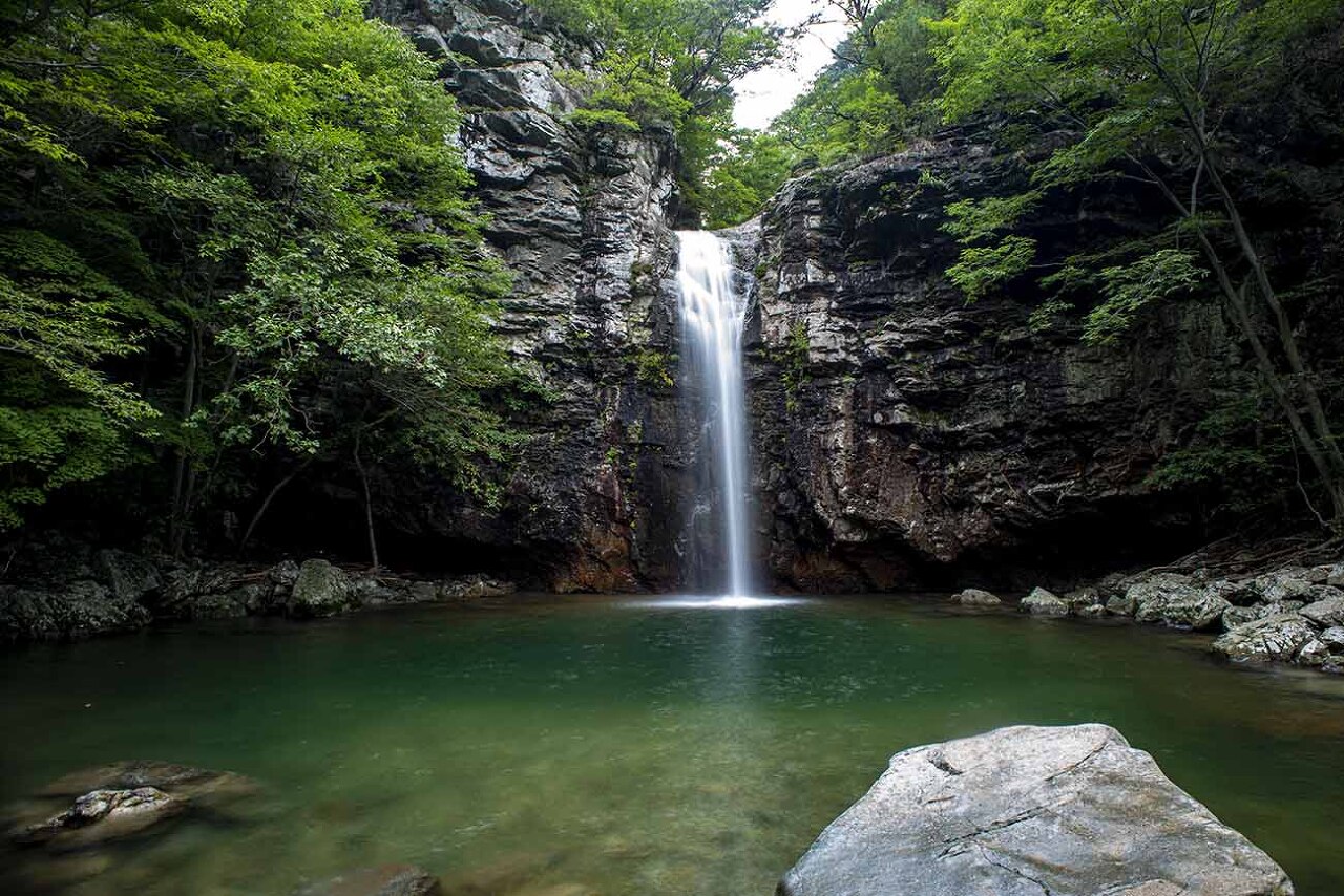 이렇게 걷다보면 어마어마한 파래소폭포를 만날 수 있다. 물의 흐름이 좋은 날에는 전망대에 앉아 시원함과 시원함을 느낄 수 있습니다.