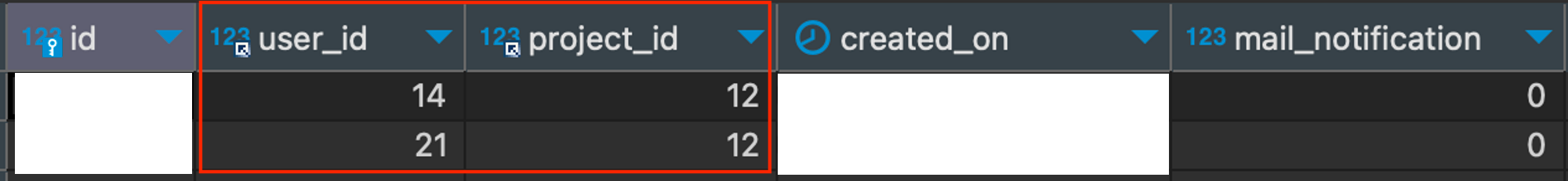 1) tb_member(project_id, user_id) 값(12, 14)에 삽입;