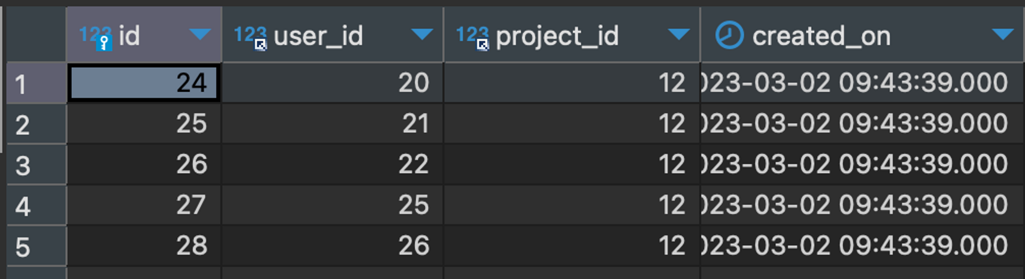 루핑 시 멤버 ID를 기준으로 데이터베이스에 삽입합니다. 이렇게 하면 목록의 크기(= 요청한 사용자 수)만큼의 사용자가 반복해서 데이터베이스에 삽입됩니다.